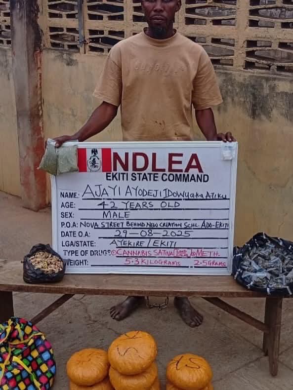 In what appears to be the single largest seizure of Loud and Colorado, two strong strains of cannabis, in Ekiti State, NDLEA operatives acting on credible intelligence on Friday 29th August raided Nova street, behind New Creation School, Ado-Ekiti where 5.3 kilograms of Loud and Colorado as well as 2.5grams of Methamphetamine were seized from a 42-year-old drug kingpin Ajayi Ayodeji Idowu (a.k.a Atiku).