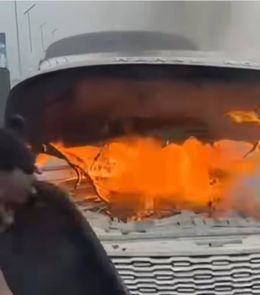 According to the statement, the car caught fire while in motion.