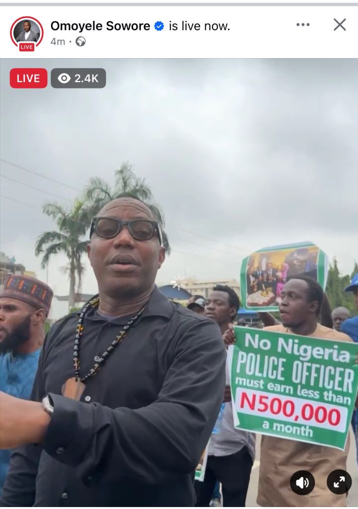 Omoyele Sowore, a human rights activist, has led retire police officers and some activists to protest against the poor welfare of both serving and retired officers of the Nigeria Police Force (NPF).