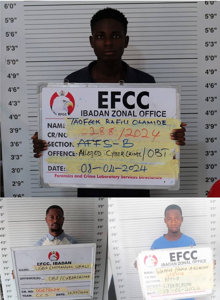 The Ibadan Zonal Directorate of the Economic and Financial Crimes Commission, EFCC, recently secured the conviction and sentence of twenty-one (21) internet fraudsters before Justice Uche Agomoh of the Federal High Court, sitting in Ibadan and Justices O.S. Adeyemi, Ladiran Akintola, R.B. Olawoyin, O.S. Adeniyi, O.A. Adetujoye, M.O. Ishola and Bayo Taiwo of the Oyo State High Court in Ibadan.