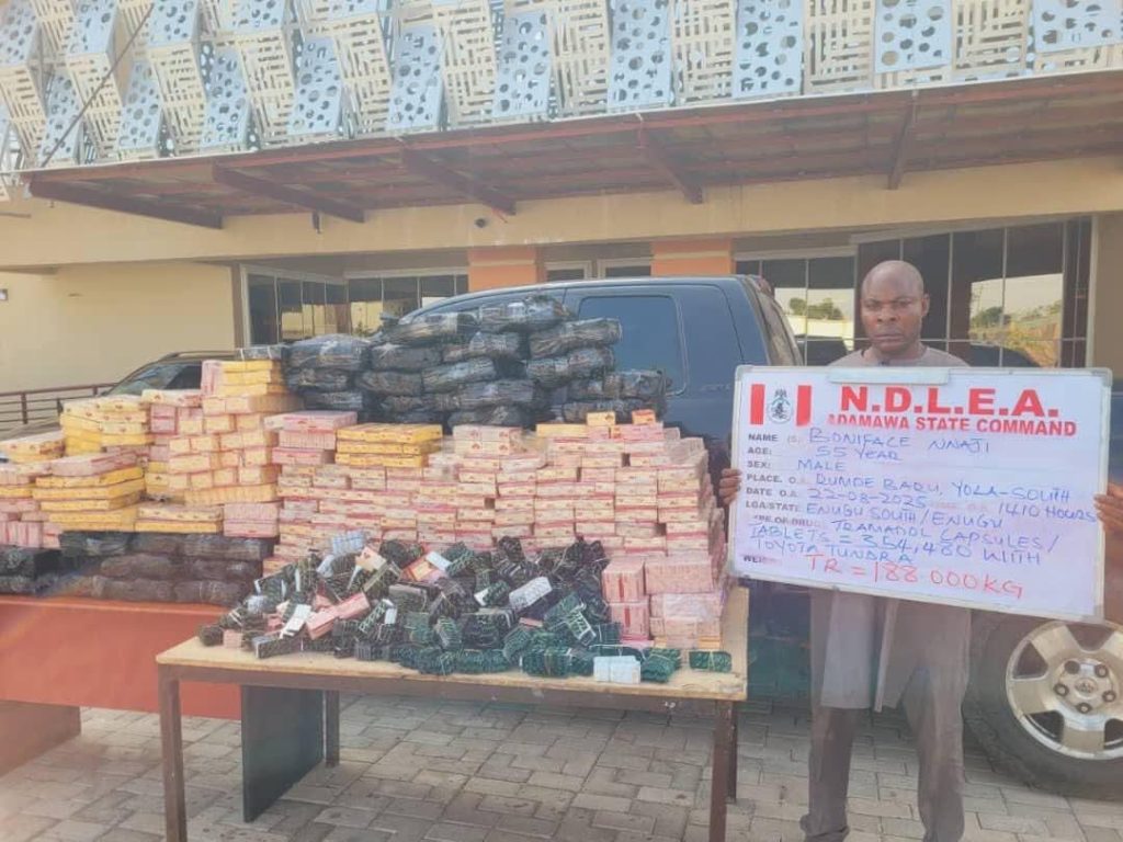 “In Adamawa, NDLEA operatives acting on credible intelligence on Friday 22nd August raided the home of a notorious drug dealer Idris Garba who scaled the fence to escape arrest while one of his associates Boniface Nnaji, 55, who attempted same was caught in the act at Rumde Baru area of Yola South.