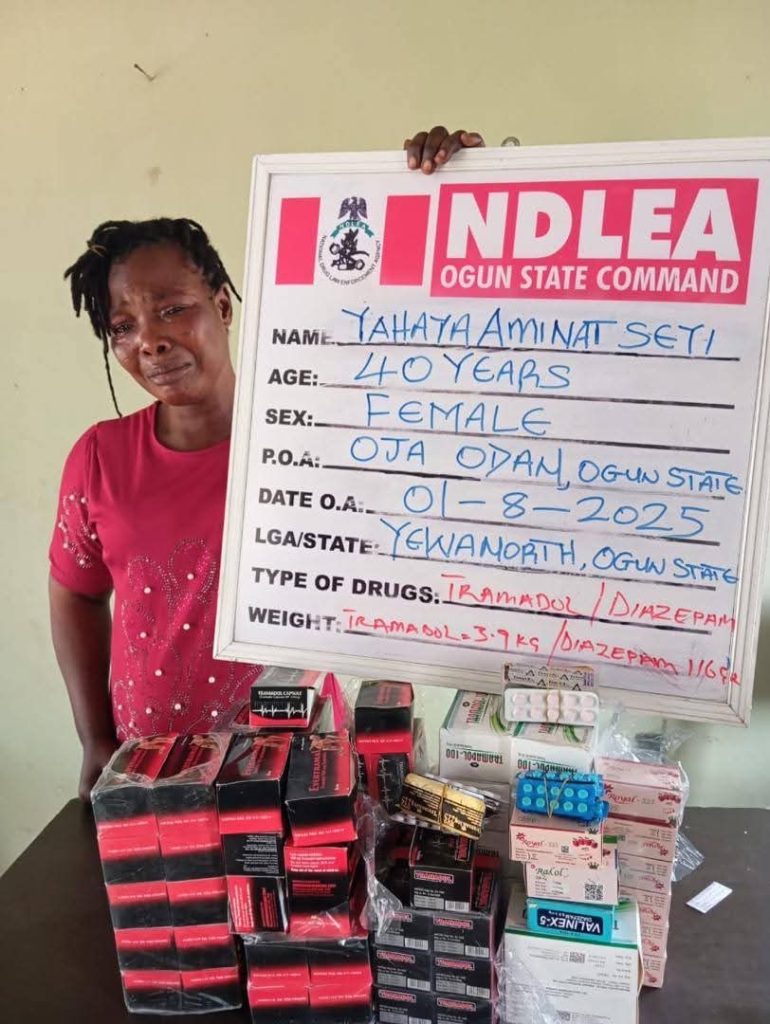 “While NDLEA operatives in Ogun state on Friday 1st August raided the Oja Odan area and arrested a female suspect, Yahaya Aminat Seyi, with 7, 218 pills of opioids mainly tramadol, their counterparts in Oyo state nabbed Oladeji Saka, 54, with 77.5 kilograms of skunk at Asanike, Ibadan, just as another suspect Benson Izah, 40, was arrested in Abraka, Delta state with 12.5kg skunk, 1kg tramadol and 14.4litres of codeine.
