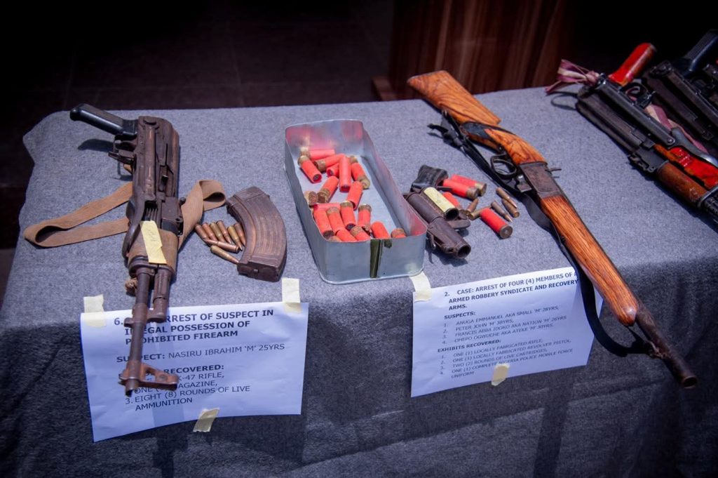 Items recovered from the suspects include four AK-47 rifles with magazines, 80 rounds of 7.62 x 39mm ammunition, and one locally fabricated pistol with 20 rounds of 9mm ammunition.