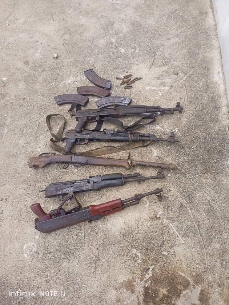 “A fierce gun battle ensued resulting in the arrest of five suspects, including the gang’s kingpin, Yahaya, 35 years and five other suspects were neutralized during the exchange of fire. The kidnapped victim was rescued unhurt and taken to the Hospital for medical evaluation, after which, she was discharged. Exhibits recovered in the operation include two AK-47 rifles, one locally fabricated LAR rifle, fourteen live rounds of ammunition, two motorcycles, and two mobile phones.